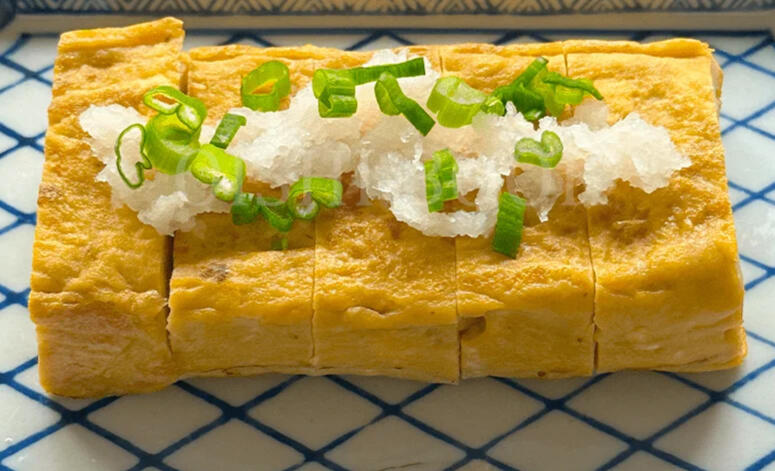 Tamagoyaki- A slightly sweet rolled egg omelet, topped with fresh green onion and rice.10,000gil