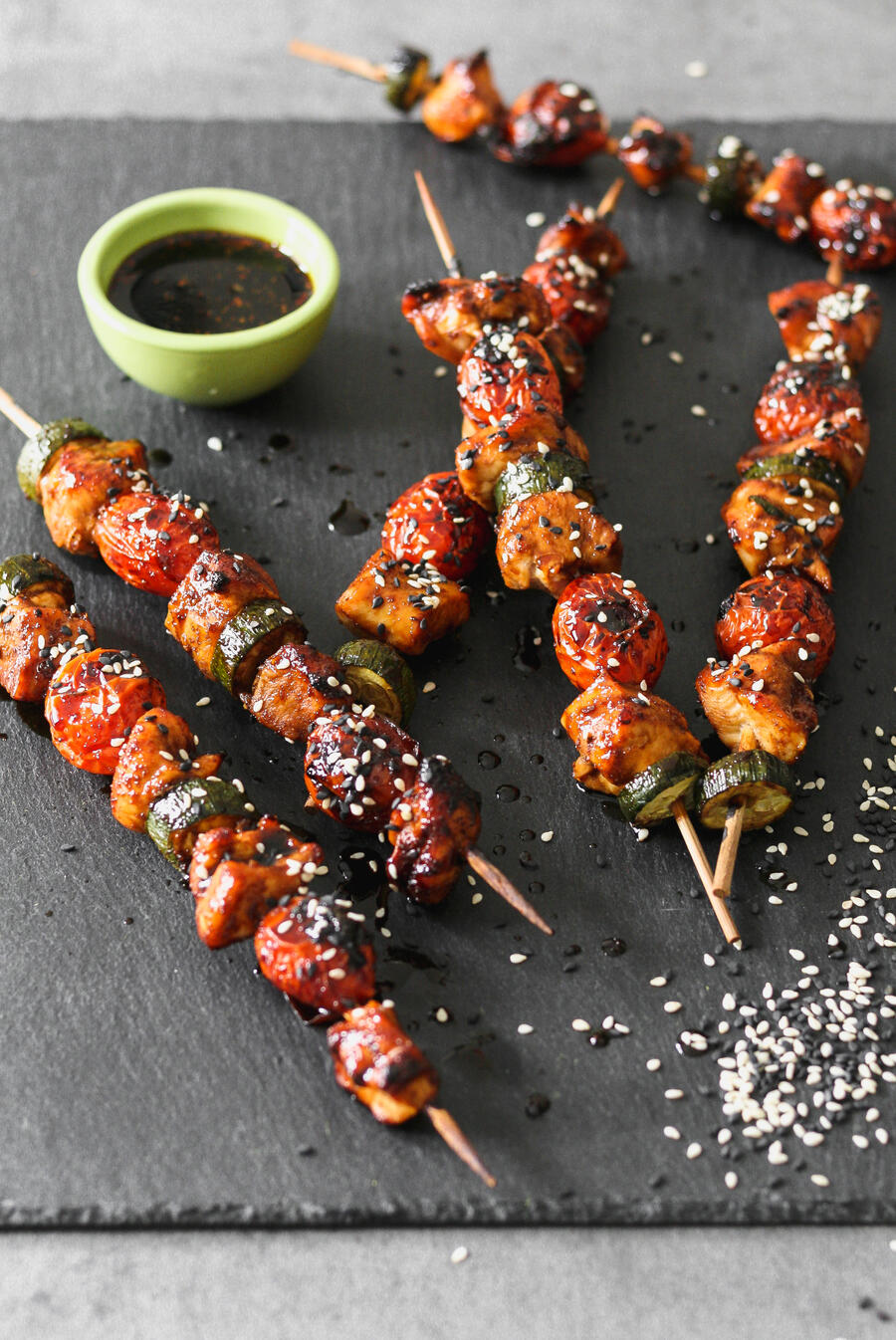Yakitori- Grilled chicken and vegetable skewers, coated in a savory-sweet soy glaze and topped with sesame.15,000gil